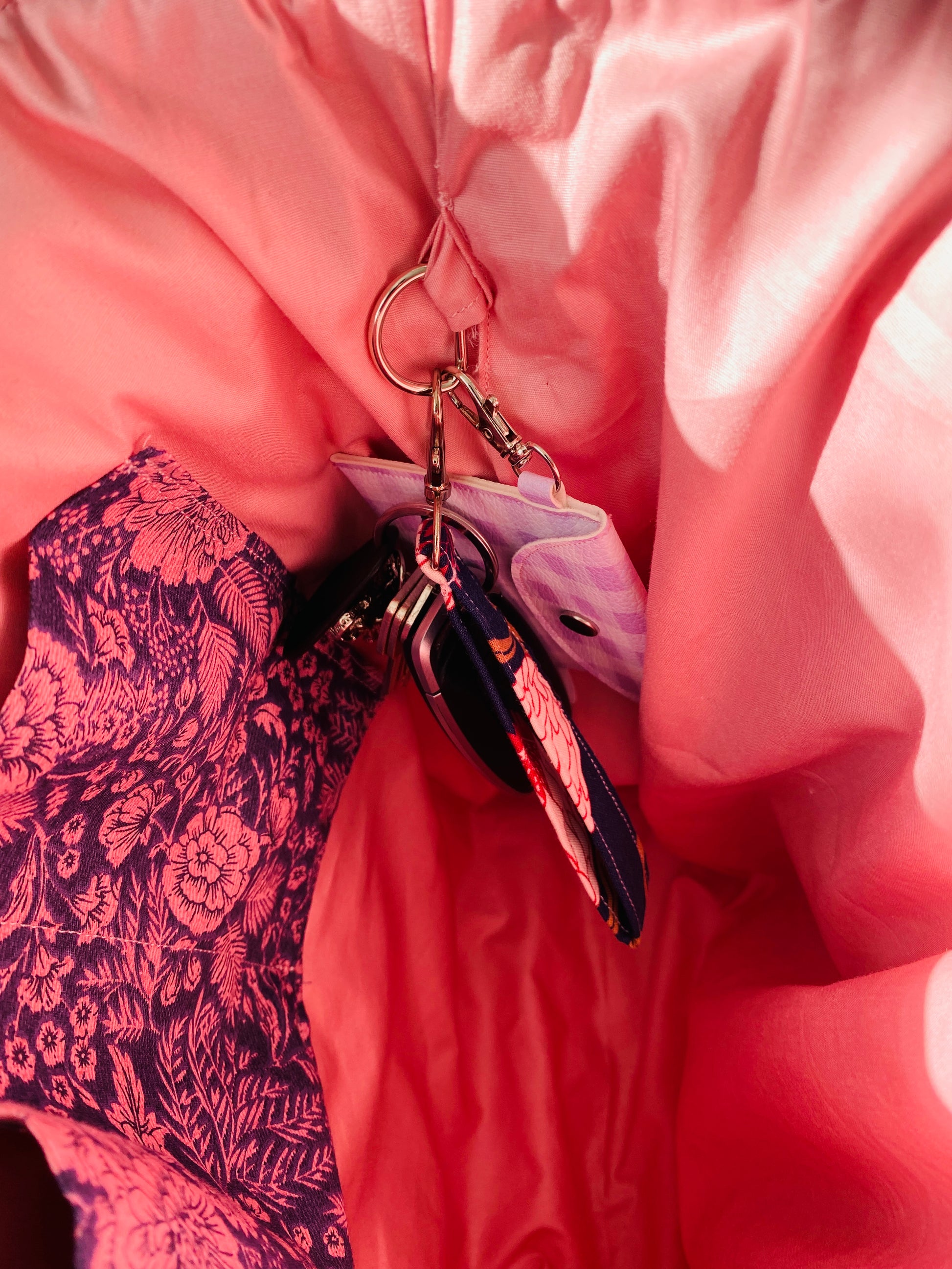 Each bag has an inside pocket and a key ring sewn in, perfect to hang your car or house keys on! (Never look for your keys again.) Or attach our handy keyring coin purse.